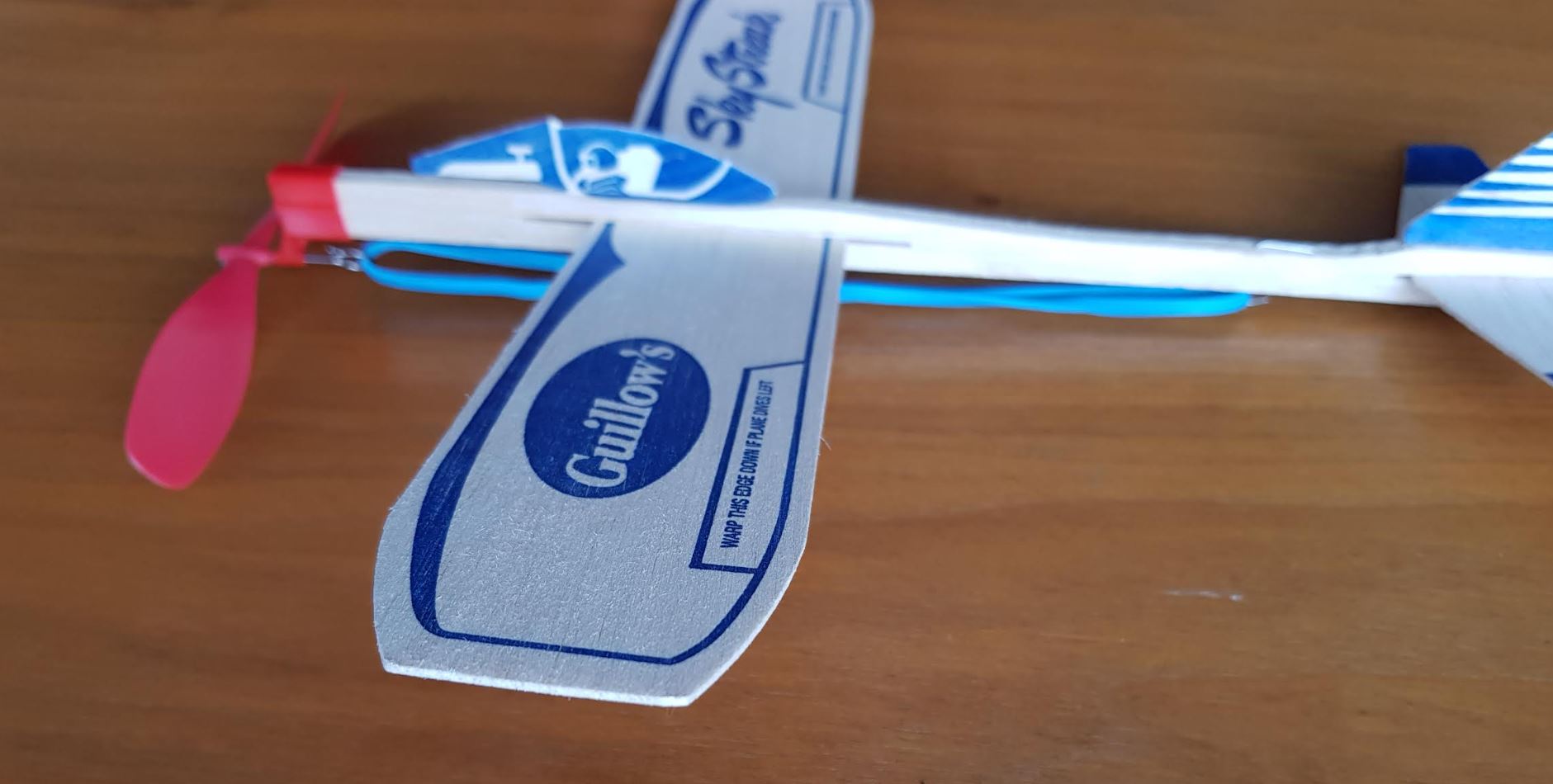 En supernem og ligetil klassisk elastikflyver, spænd elastikken op og slip - prøv f.eks. forskellige teknikker for at opnå de længste flyvninger! Utrolig nemme at have med at gøre, f.eks. den perfekte gaveidé!
